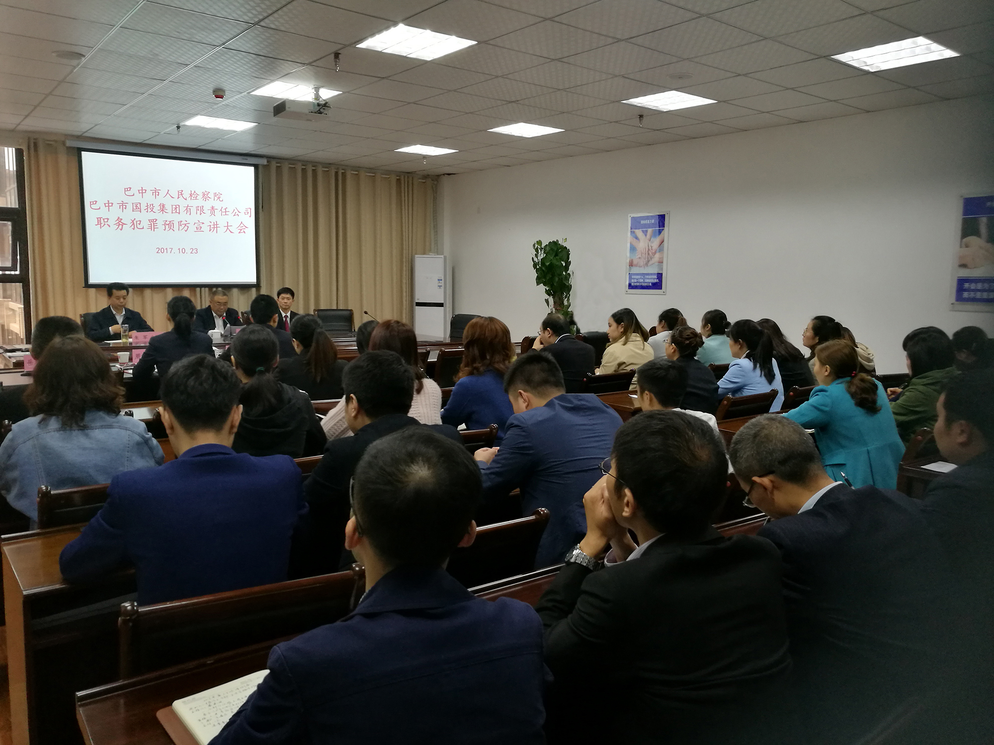10月23至27日,巴中市检察院组织职务犯罪预防宣讲团深入市交通系统、国投公司,恩阳区部分乡镇,国网平昌供电公司、坦溪镇集中开展“服务脱贫攻坚护航绿色发展”专题宣讲6场次,受众达1000余人。