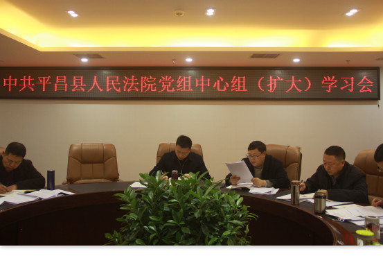 12月29日,平昌法院召开党组中心组(扩大)学习会。会议由党组书记、院长乔君主持,该院中心组成员出席会议,各部门负责人列席会议。