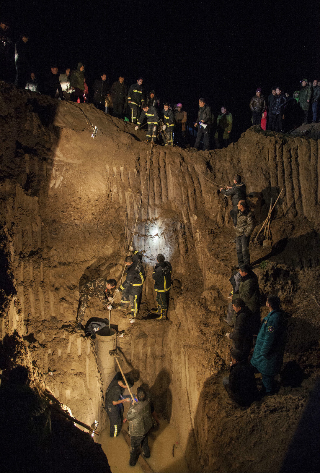 2017年2月7日,河南临颍县一名12岁女孩在玩耍时不慎坠入村南麦田内的一口机井中,民警、消防官兵、村民展开营救。河南漯河日报社记者杨光摄