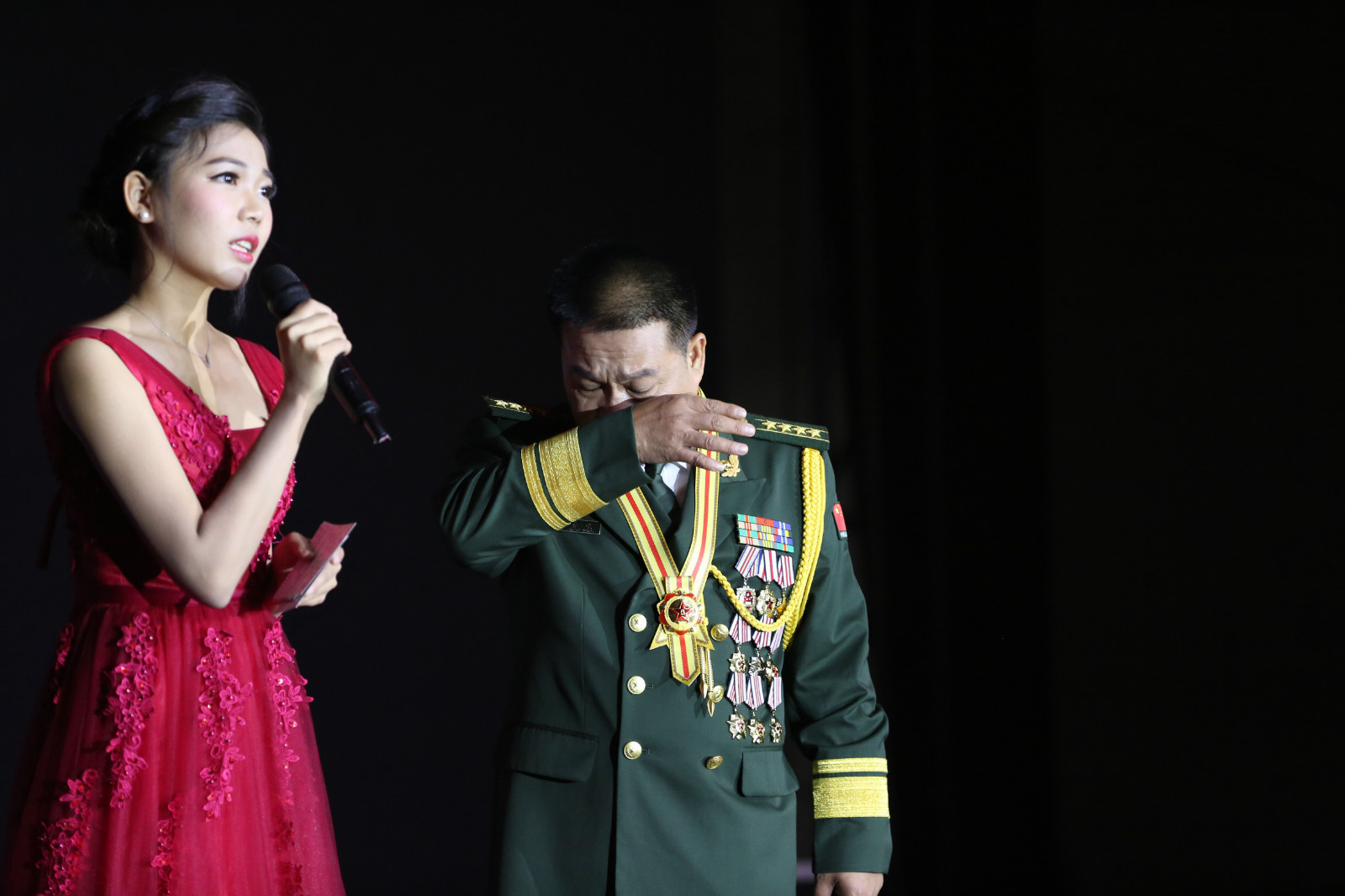 2017年9月27日,在“长安剑”微信公众号创办两周年纪念会上,被中央军委主席习近平授予“八一勋章”的云南省公安边防总队普洱市支队原支队长印春荣谈及对妻子的歉疚,泪流满面。浙江省宁波市公安局宣传处民警沈欣摄