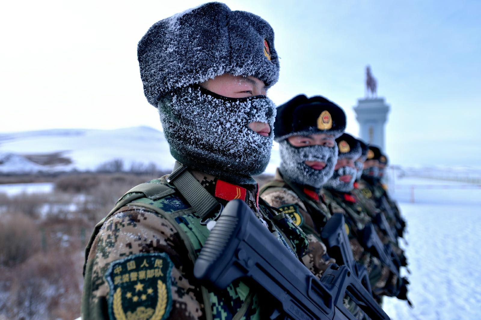 2017年1月11日,内蒙古自治区公安边防总队阿尔山边防检查站的官兵们不畏极寒天气,坚持训练,争做习主席的好战士。央视网高级编辑王伟摄