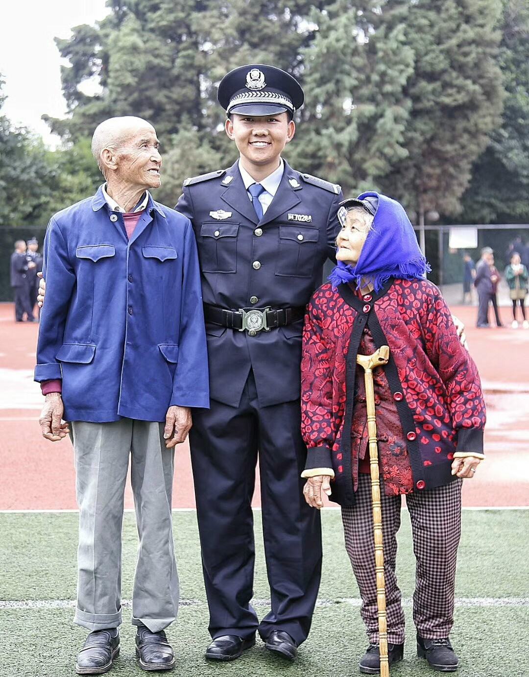 2017年10月13日,云南警官学院学员杨函橙的爷爷奶奶专程从老家赶来,看望刚入学的孙子。云南警官学院学院办公室民警陈丽君摄