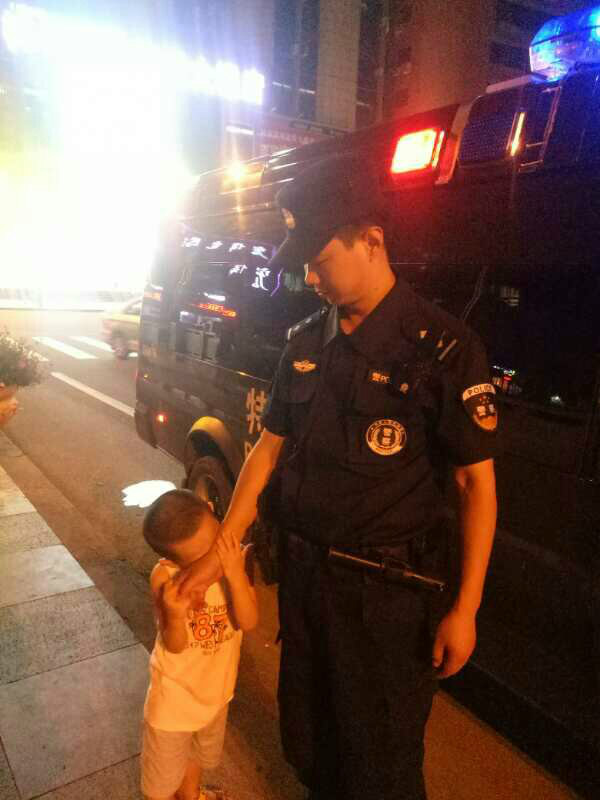 2017年6月7日晚,四川蓬溪县巡特警大队民警孔洋在巡逻时偶遇散步的妻儿。儿子已多日未见父亲,他一把抱住孔洋,带着哭腔喊:“爸爸,你怎么还不回家?”四川遂宁市蓬溪县巡特警大队辅警李军摄