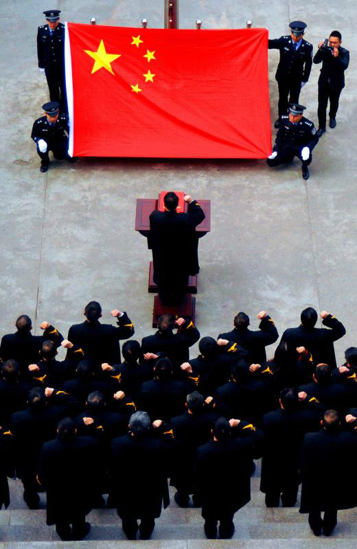2017年1月5日,重庆忠县人民法院39名法官参加“入额”仪式,面对国旗庄严宣誓。重庆忠县人民法院干警刘霞摄