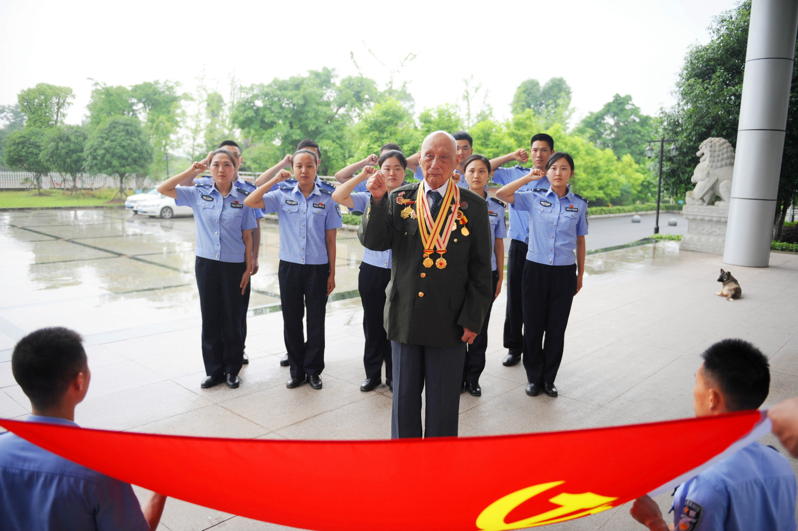 2017年“七一”前夕,重庆市垫江监狱96岁离休干部、老红军渠吉堂带领青年党员民警重温入党誓词,激励大家不忘初心、牢记使命。重庆市垫江监狱薛会胜摄