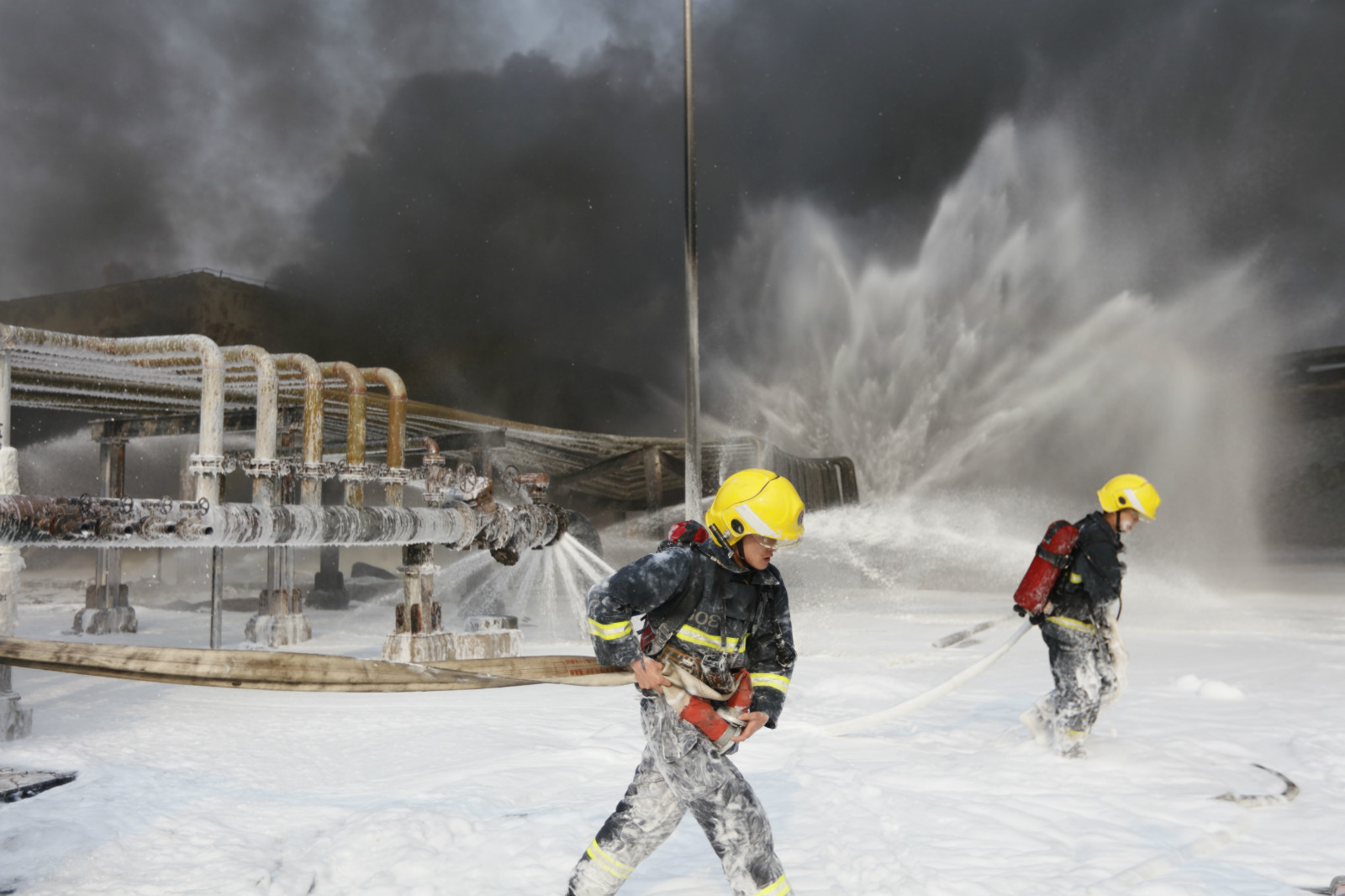 2017年3月1日,浙江省宁波市一处化工设施发生火灾,消防官兵奋力扑救。浙江省宁波市公安消防支队防火监督处颜杰摄