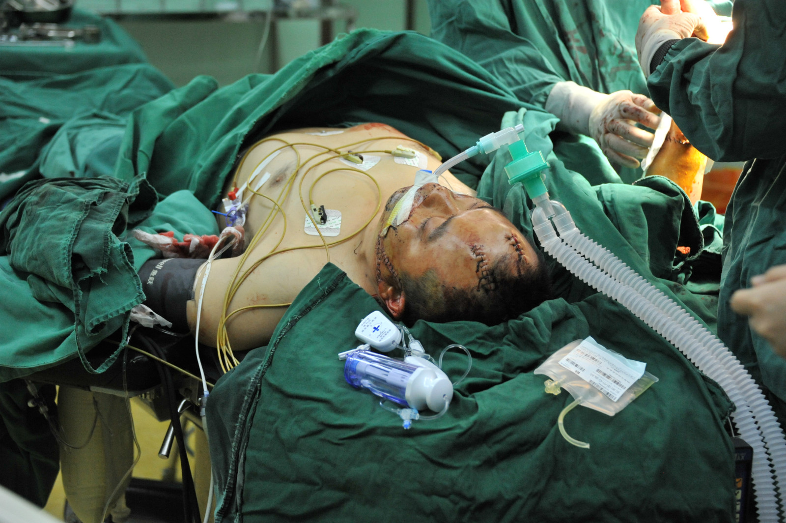 2017年2月2日,山西省长治市屯留县公安局刑警大队大队长翟树斌在解救人质过程中,被歹徒疯狂砍杀,头部、脸部、颈部、双臂等多处被砍伤,经过6天抢救,终于脱离了生命危险。山西省长治市屯留县公安局刑警大队麟绛中队中队长宋勇摄 |