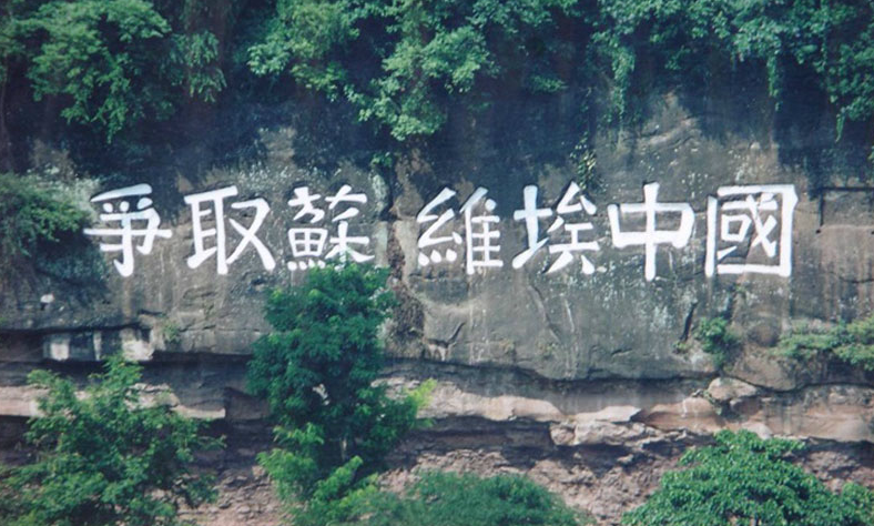 图3:通江县至诚镇佛耳崖石刻标语(全国最大的红军石刻标语);