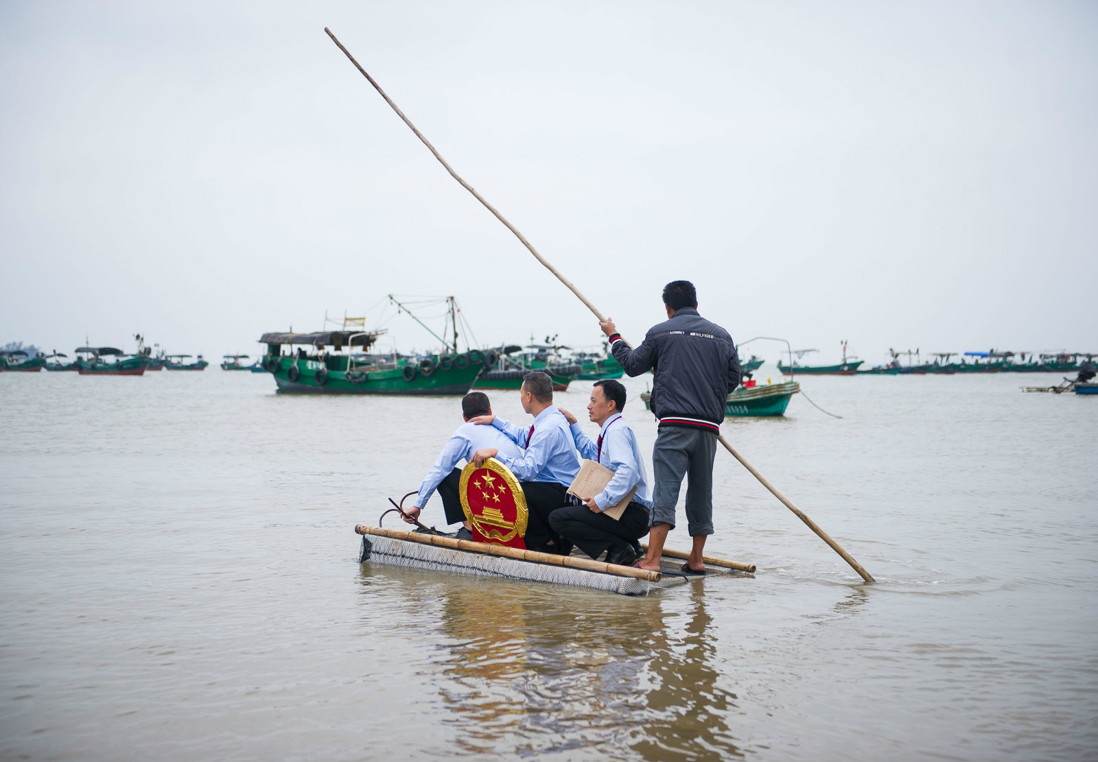 2017年11月8日,广东湛江,硇洲人民法庭3名法官乘坐小舟前往渔船开庭。南方日报社摄影记者张梓望摄
